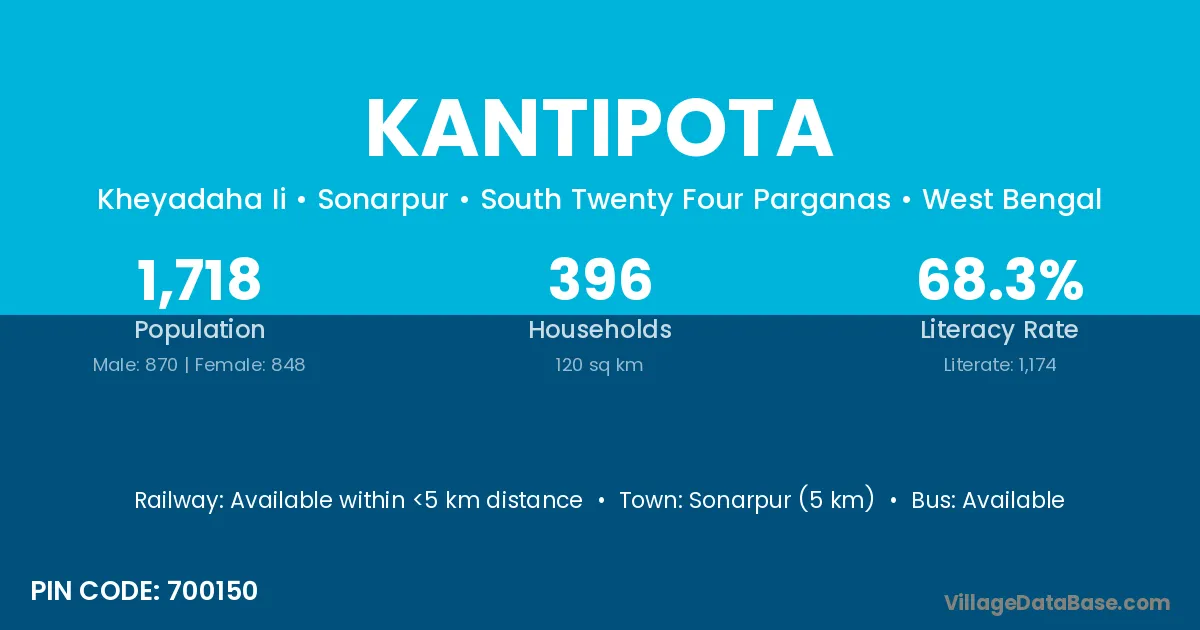 Sonarpur (5 km) is the nearest town to Kantipota village for major economic activities and is located approximately 5 km away.