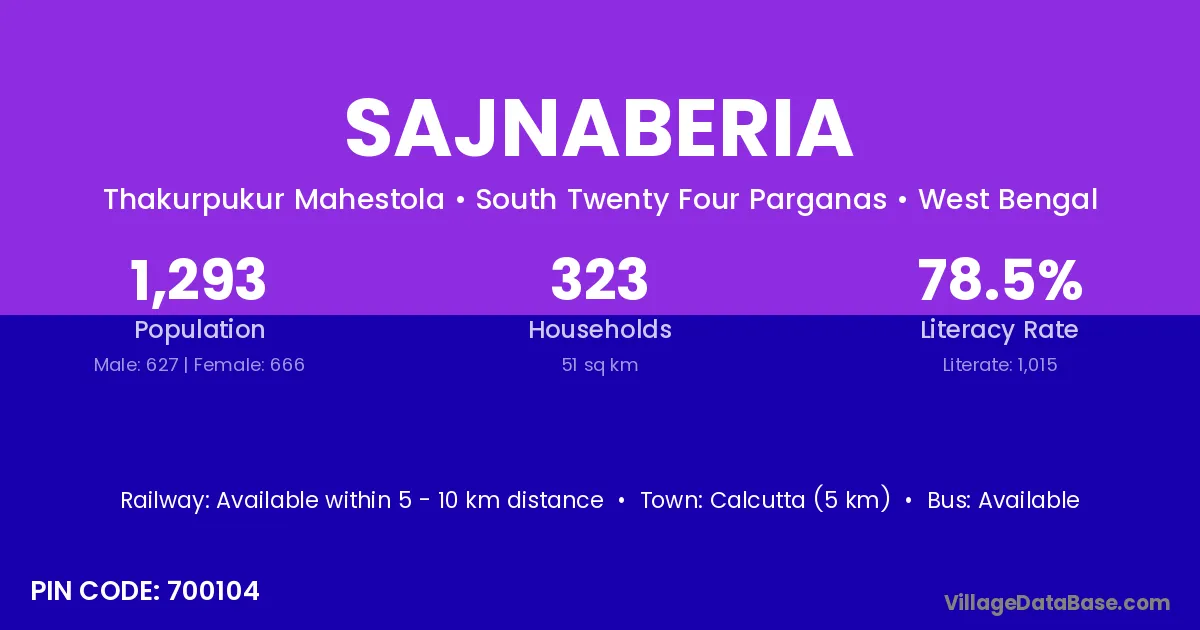 Calcutta (5 km) is the nearest town to Sajnaberia village for major economic activities and is located approximately 5 km away.