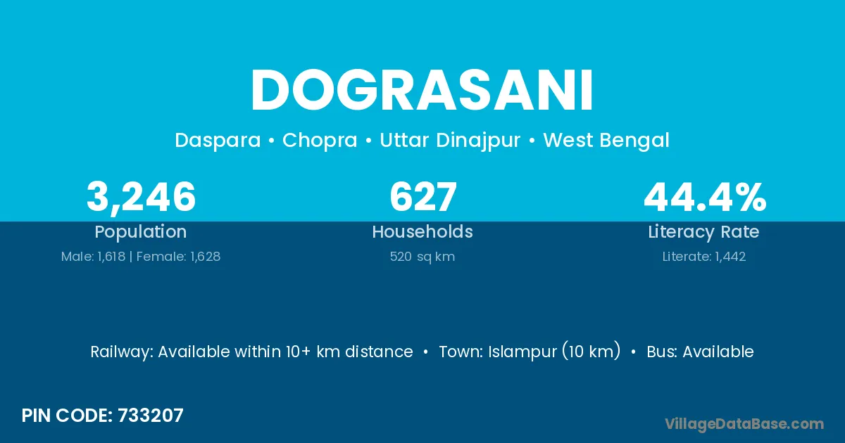 Islampur (10 km) is the nearest town to Dograsani village for major economic activities and is located approximately 10 km away.