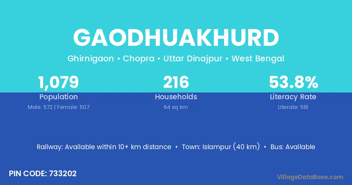 According to Census 2011 information, the village code of Gaodhuakhurd village is 733202.