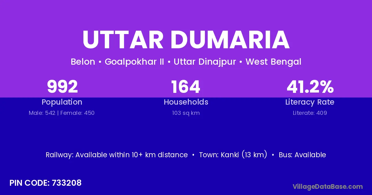 According to Census 2011 information, the village code of Uttar Dumaria village is 733208.