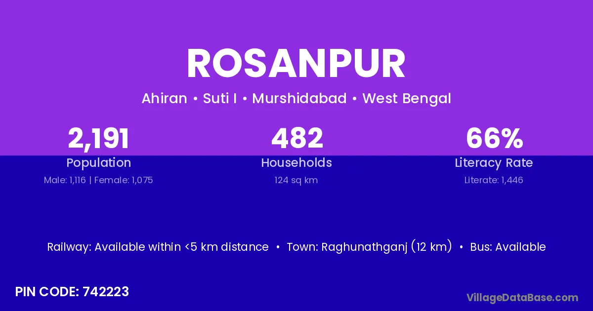 Raiganj (28 km) is the nearest town to Rosanpur village for major economic activities and is located approximately 28 km away.