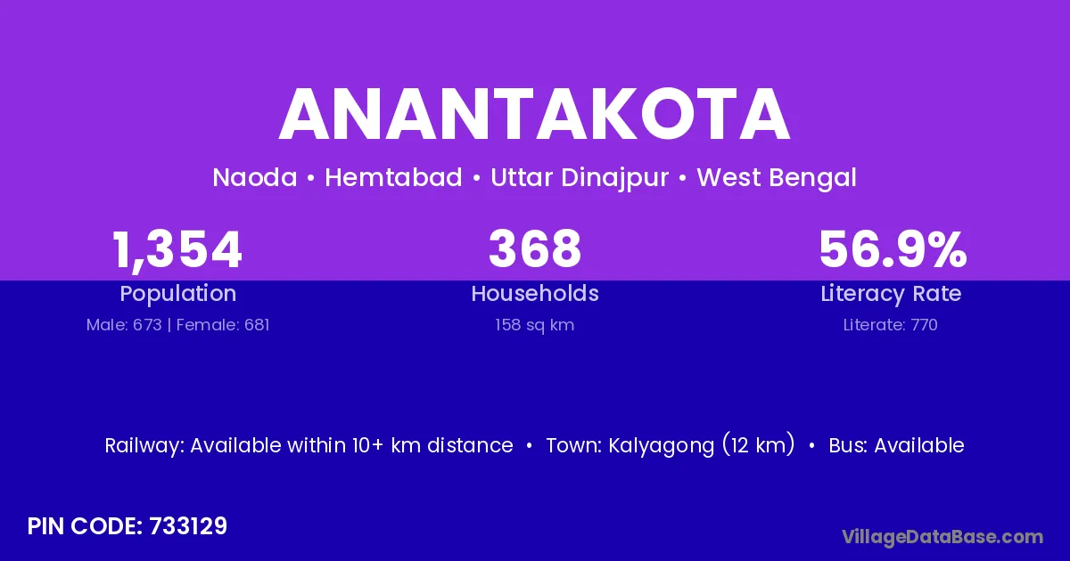 According to Census 2011 information, the village code of Anantakota village is 733129.