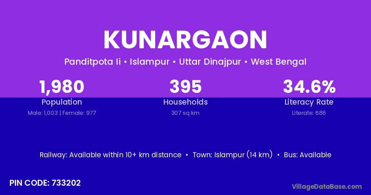 According to Census 2011 information, the village code of Kunargaon village is 733202.