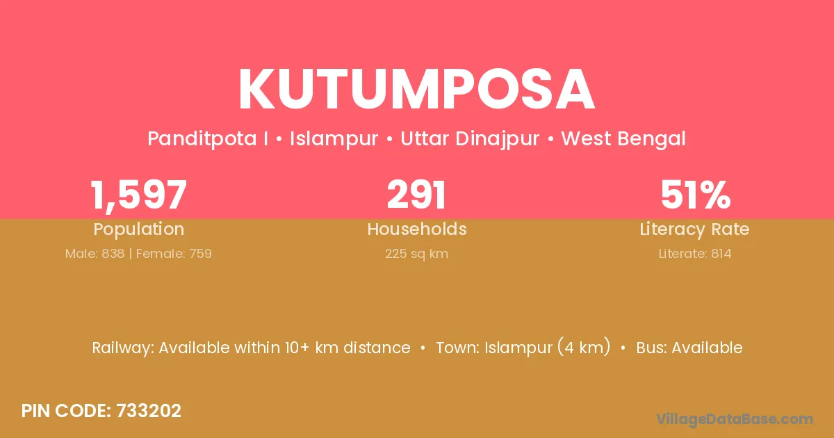 Kutumposa village is located in the Islampur Subdivision of the Uttar Dinajpur district in West Bengal.