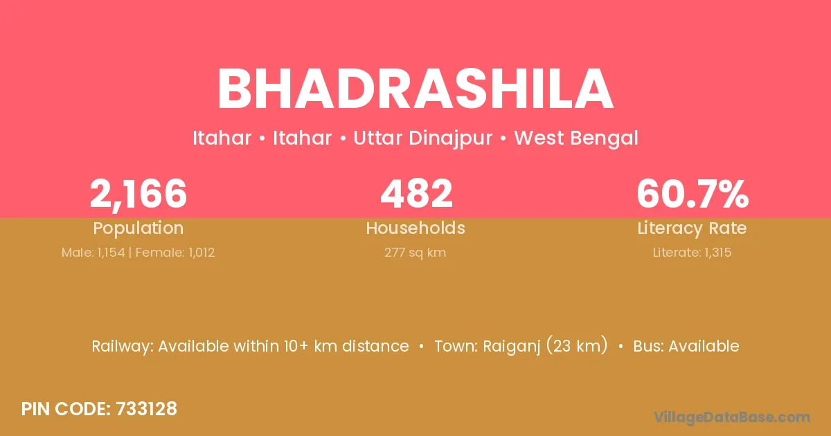 Raiganj (23 km) is the nearest town to Bhadrashila village for major economic activities and is located approximately 23 km away.