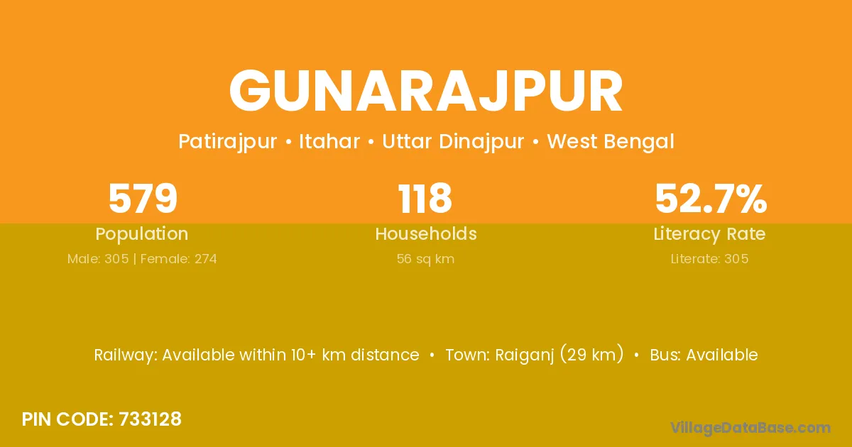 Raiganj (29 km) is the nearest town to Gunarajpur village for major economic activities and is located approximately 29 km away.