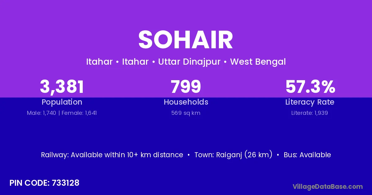 Raiganj (26 km) is the nearest town to Sohair village for major economic activities and is located approximately 26 km away.