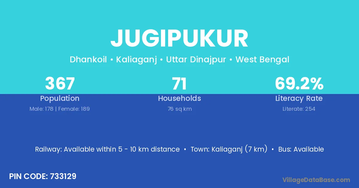 Kaliaganj (7 km) is the nearest town to Jugipukur village for major economic activities and is located approximately 7 km away.