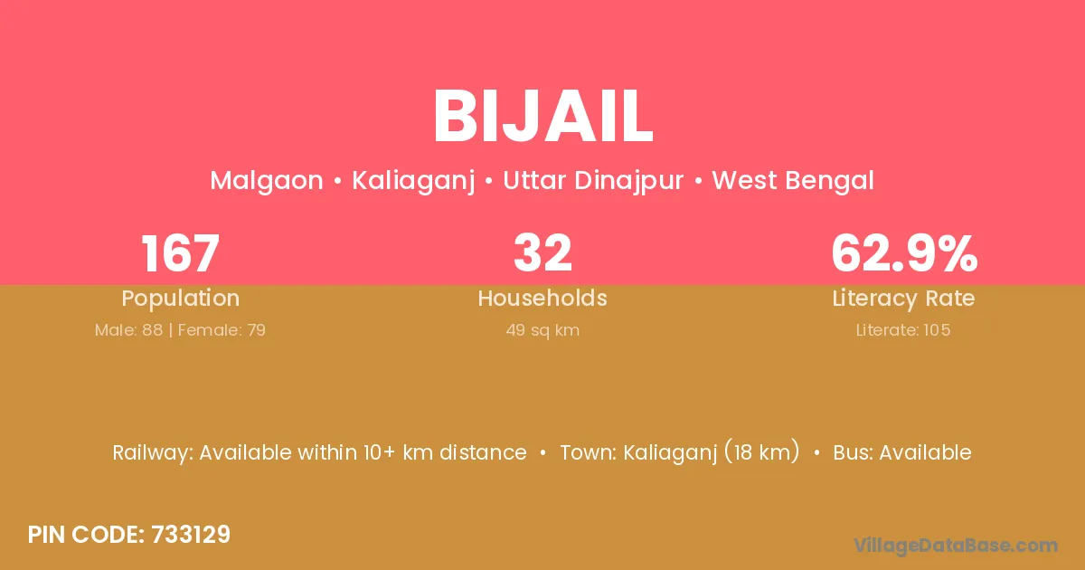 Kaliaganj (18 km) is the nearest town to Bijail village for major economic activities and is located approximately 18 km away.
