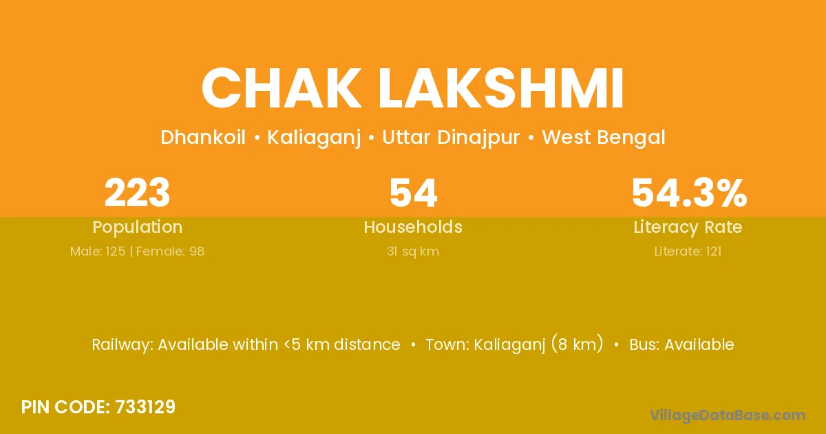 Kaliaganj (8 km) is the nearest town to Chak Lakshmi village for major economic activities and is located approximately 8 km away.