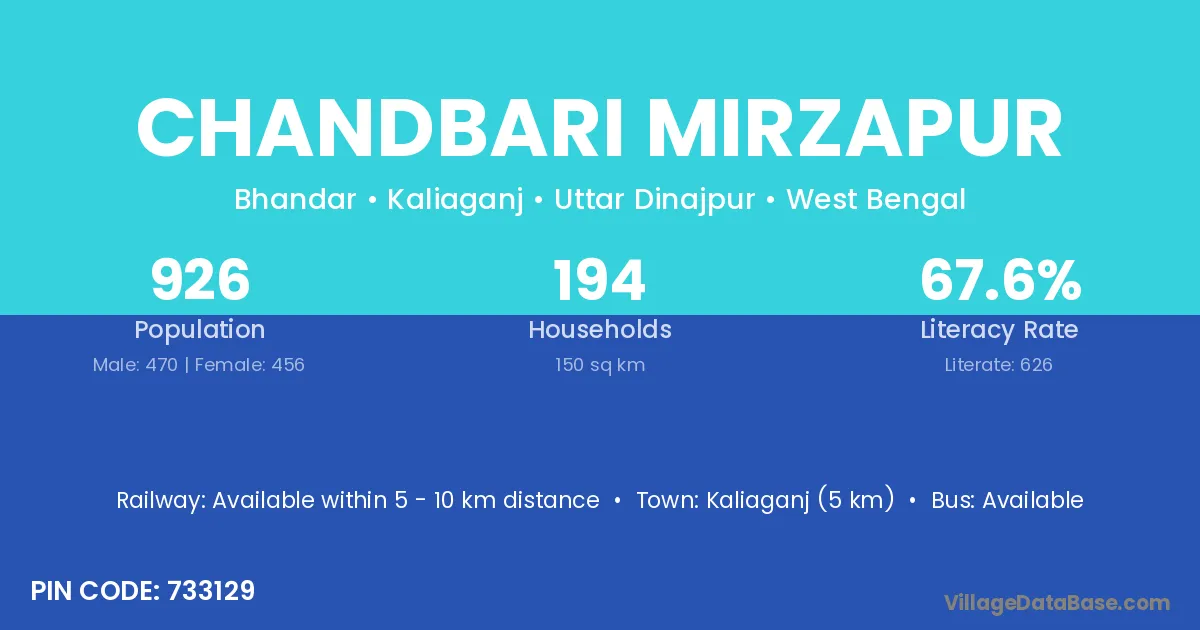 Kaliaganj (5 km) is the nearest town to Chandbari Mirzapur village for major economic activities and is located approximately 5 km away.