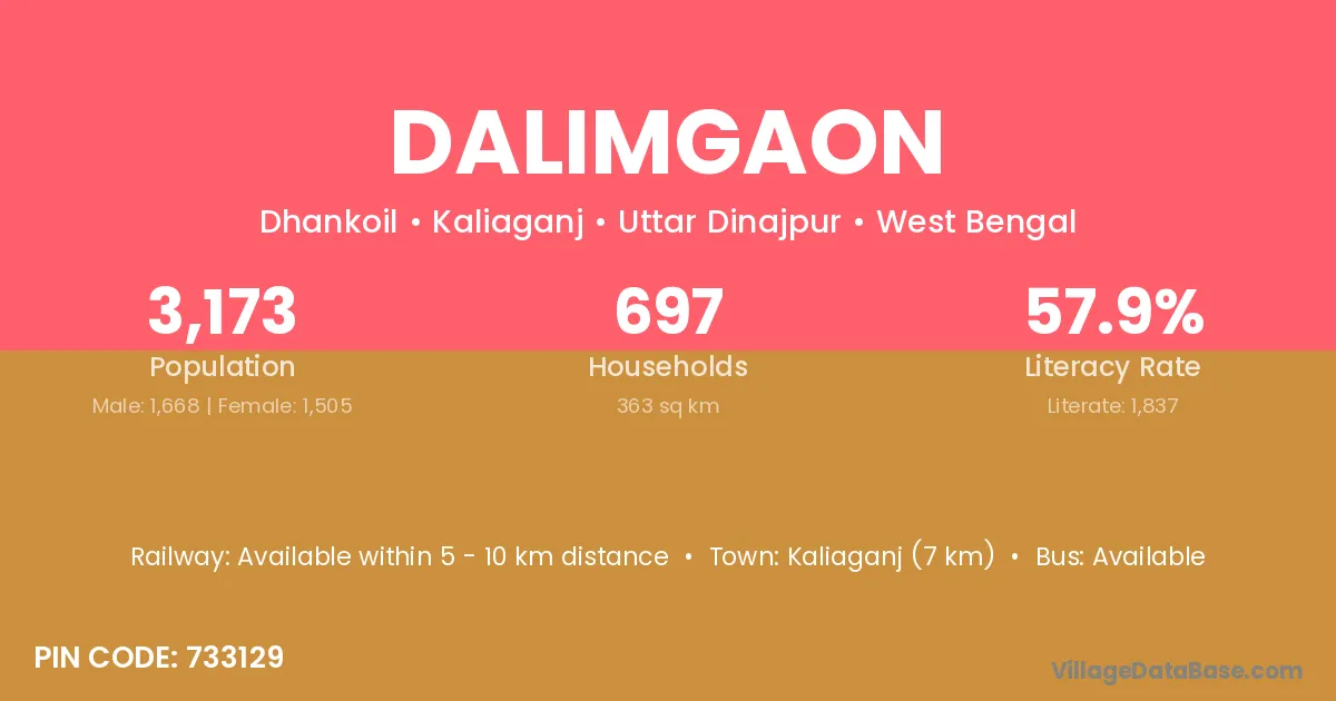 Kaliaganj (7 km) is the nearest town to Dalimgaon village for major economic activities and is located approximately 7 km away.