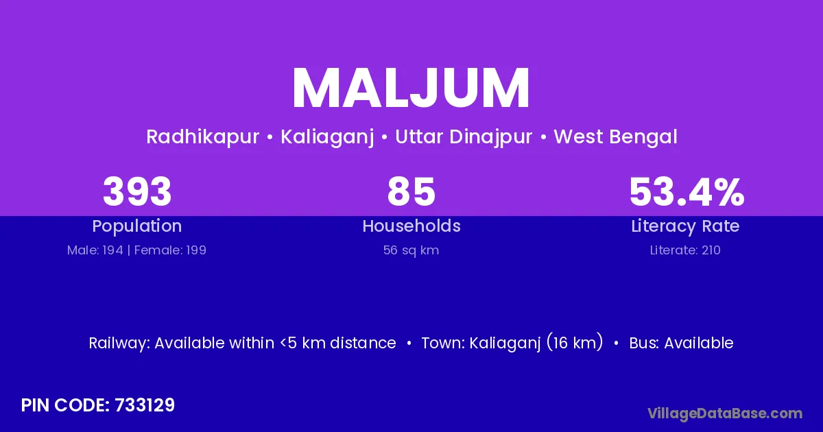 Kaliaganj (16 km) is the nearest town to Maljum village for major economic activities and is located approximately 16 km away.