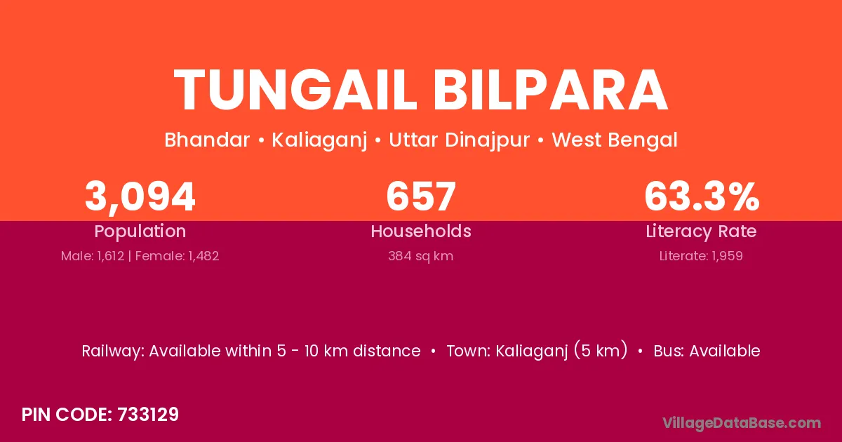 Kaliaganj (5 km) is the nearest town to Tungail Bilpara village for major economic activities and is located approximately 5 km away.