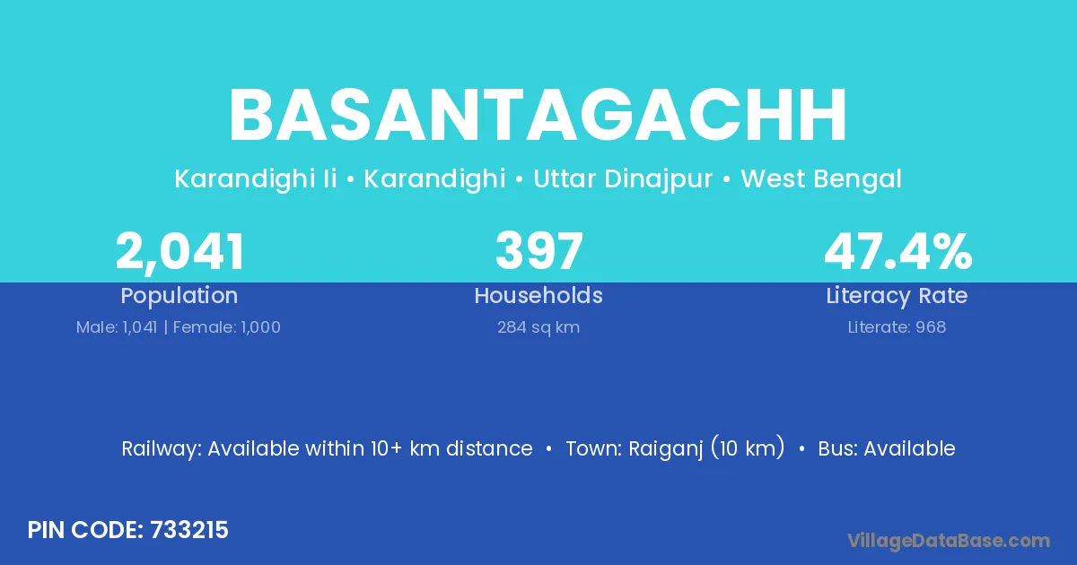 Raiganj (10 km) is the nearest town to Basantagachh village for major economic activities and is located approximately 10 km away.