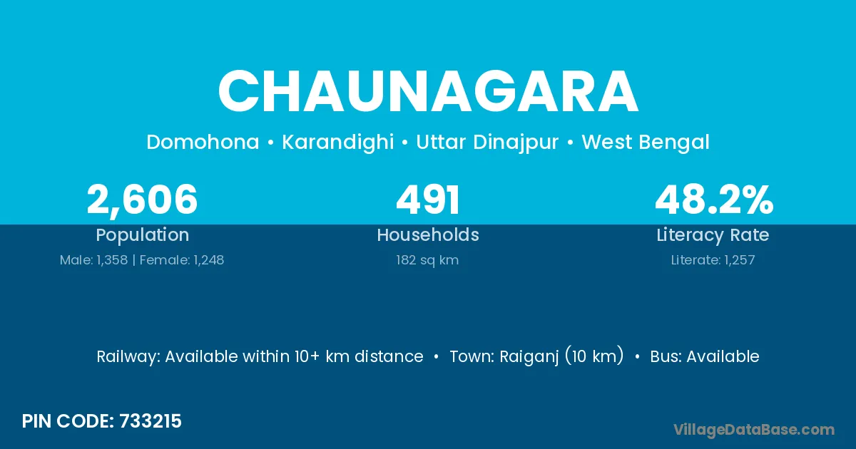 Raiganj (10 km) is the nearest town to Chaunagara village for major economic activities and is located approximately 10 km away.