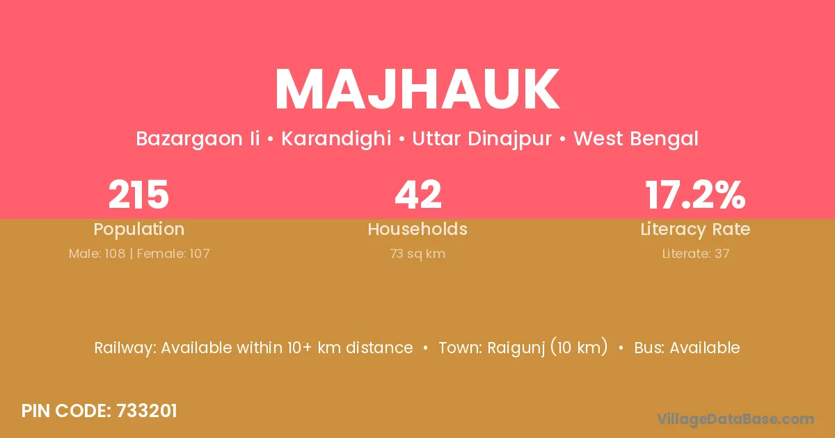 Raigunj (10 km) is the nearest town to Majhauk village for major economic activities and is located approximately 10 km away.
