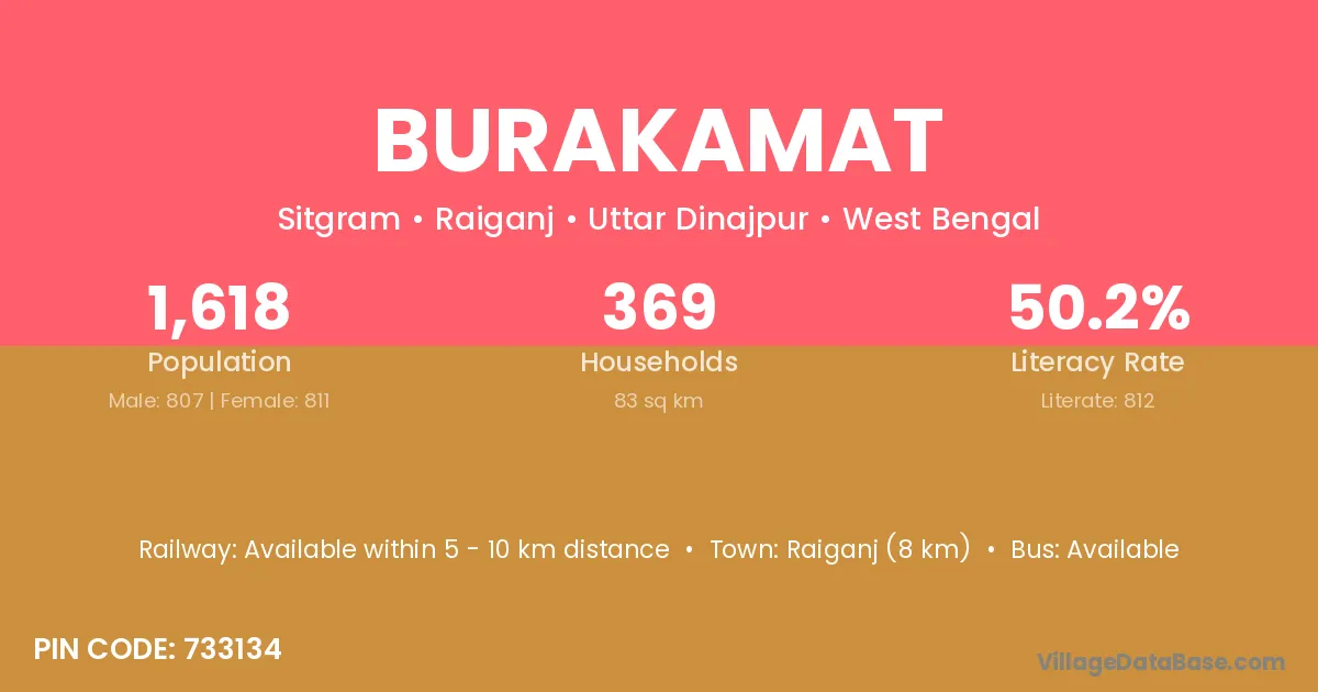 Raiganj (8 km) is the nearest town to Burakamat village for major economic activities and is located approximately 8 km away.