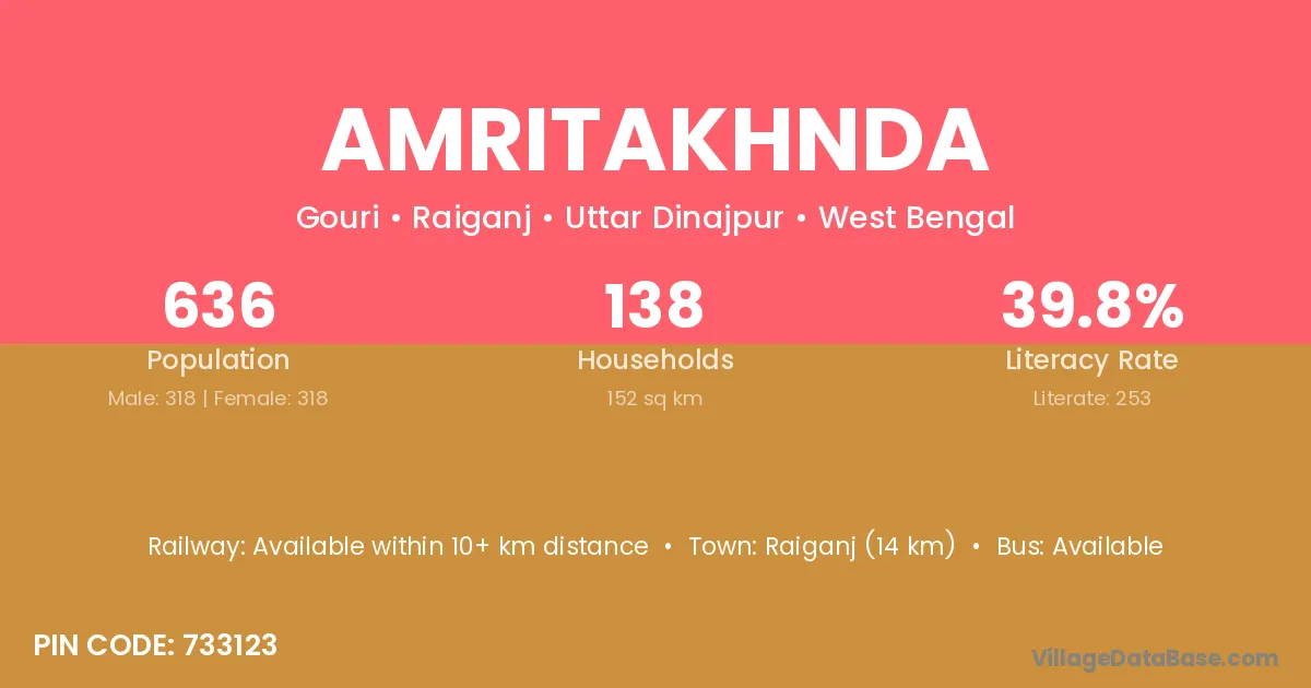 Raiganj (14 km) is the nearest town to Amritakhnda village for major economic activities and is located approximately 14 km away.